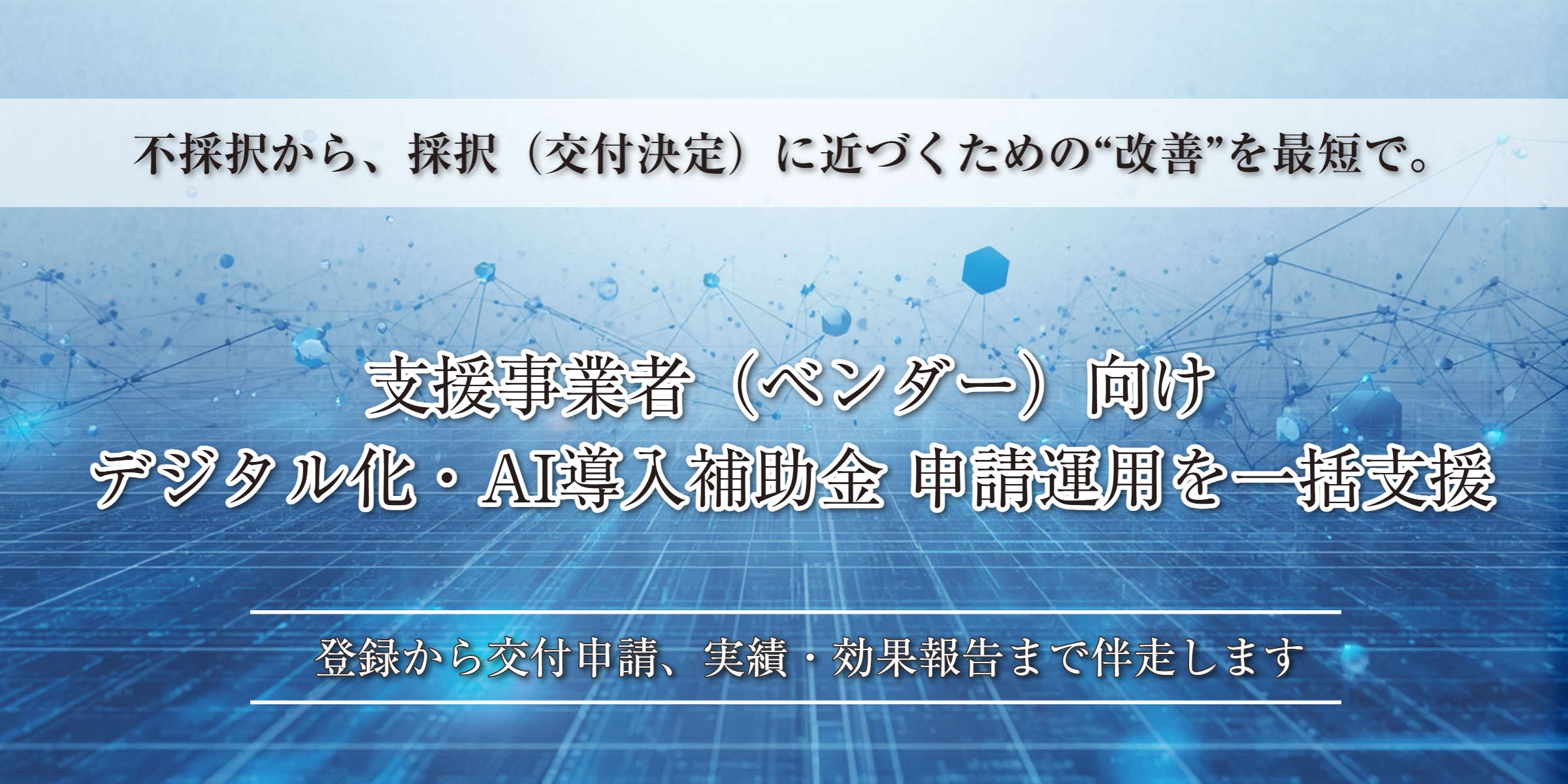 デジタル化・AI導入補助金の申請を「通る形」に整える申請コンサルティングです。