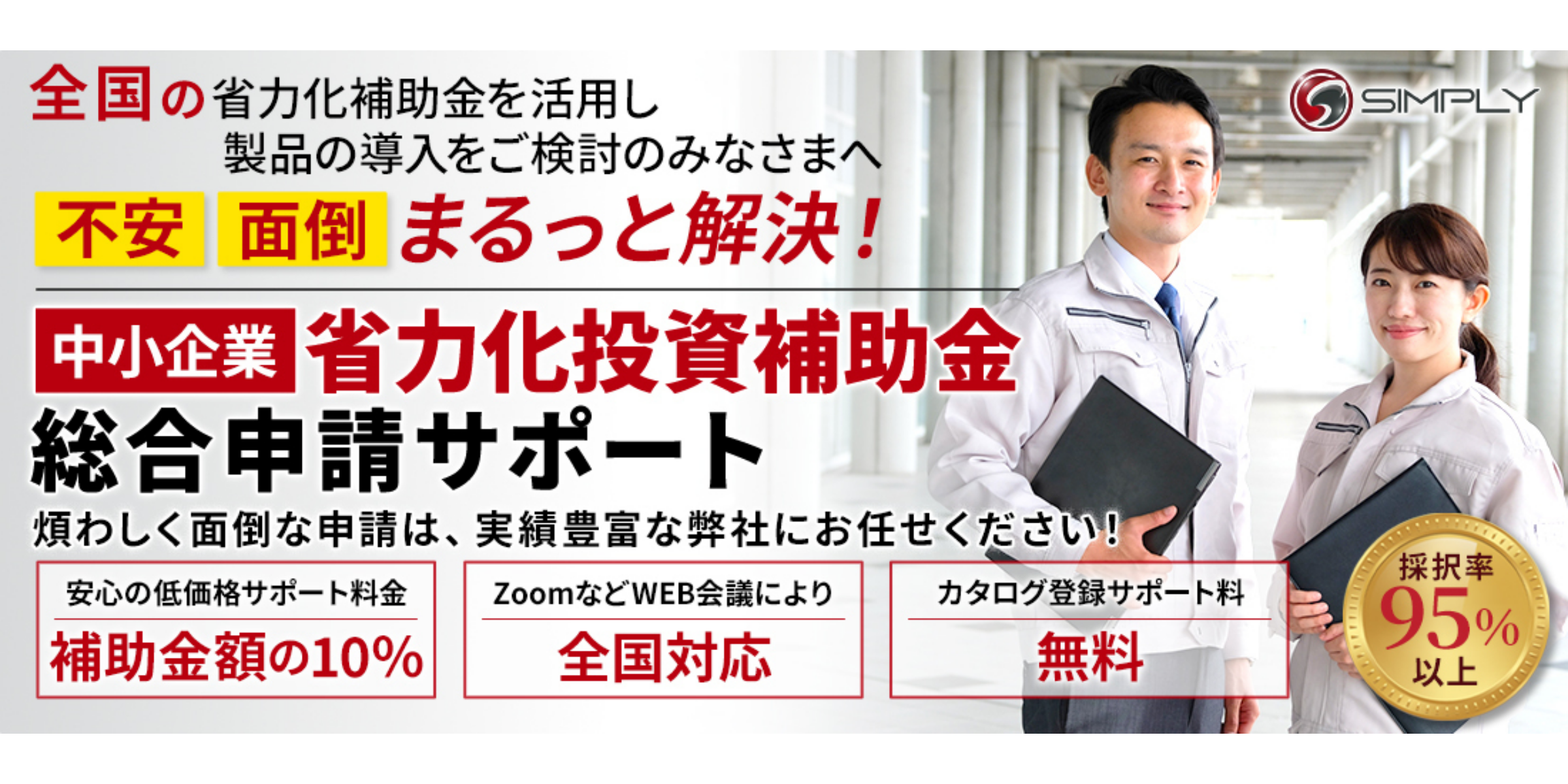 省力化補助金の申請サポートは補助金受給額の10%(税別・下限10万円)にて承っております。